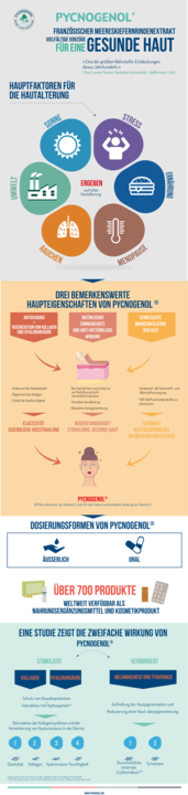 Pycnogenol® wird bei verschiedenen dermatologischen Indikationen weithin für lokale und orale Anwendungen genutzt. Eine einzigartige Kombination der pharmakologischen Funktionen von Pycnogenol® bietet eine unvergleichliche Vielzahl von Vorteilen für eine gesunde Haut.