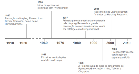 Em seus laboratórios em Berlim, Charles Haimoff desenvolveu uma substância única, um flavonoide hidrossolúvel extraído da casca do pinheiro marítimo francês, chamado de Pycnogenol®. A visão original de Charles Haimoff, de décadas atrás, ainda é hoje a principal força por trás do compromisso da Horphag com pesquisa e desenvolvimento.